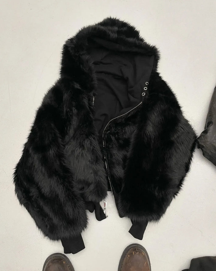This jacket brings two completely different moods into one design: a simple cotton hoodie look on one side, and a warm, fluffy inner side that gives a bolder and more unique style. Comfortable, warm, and easy to match—made for everyone.